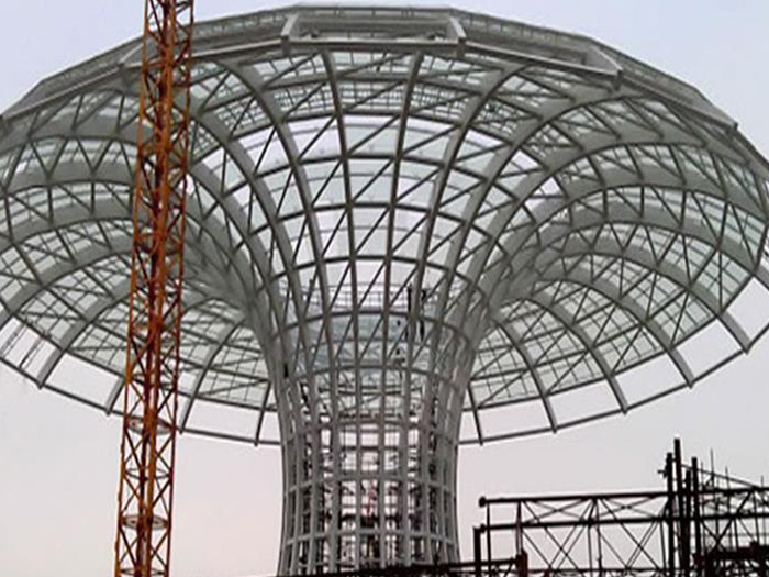 二、球形网架结构因其结构新颖,受力合理,自重轻、用钢量低等优点。如大型体育场馆球形五常螺栓球网架、公共场馆球形网架、电厂五常螺栓球网架、水泥工业球形网架、仓储物流球形网架、五常干煤棚工业球形网架、五常收费站五常加油站球形网架、展览中心、影剧院、商场、航站楼、候车厅、工厂五常车间、仓库、电视塔等球形螺栓球节点网架。国内球形网架结构主要分为:五常焊接球节点网架及螺栓球节点网架两种。螺栓球节点网架其构件工厂内加工量较大,现场安装便捷,适用于现场工期紧,五常施工条件、用电量受制约,网架形状复杂、五常杆件定位困难的异形结构。螺栓球节点球形网架系统基本由五常杆件、螺栓球、支撑支座等组成。按照节点形式可分为交叉五常桁架体系、四角锥体系、三角锥体系等。支撑方式多为固定支座支撑。对于大面积、大跨度及有特殊受力或伸缩要求的网架结构可采用橡胶支座、滑移支座、球铰支座等支撑形式,以满足结构自身的受力稳定、均衡,便于内力释放等设计要求。